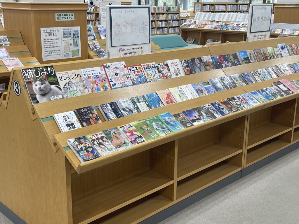 ミニ展示は9月~10月にかけて「トライやる・ウィーク」で受入していた清陵中学校と猪名川中学校の2年生がおすすめする本を展示しています。