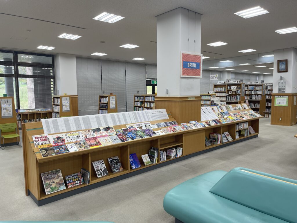 10月の展示は「2025年は昭和100年」です。昭和のできごと年表や、芥川賞・直木賞の第100回(昭和63年下半期)までの一覧も展示しています。